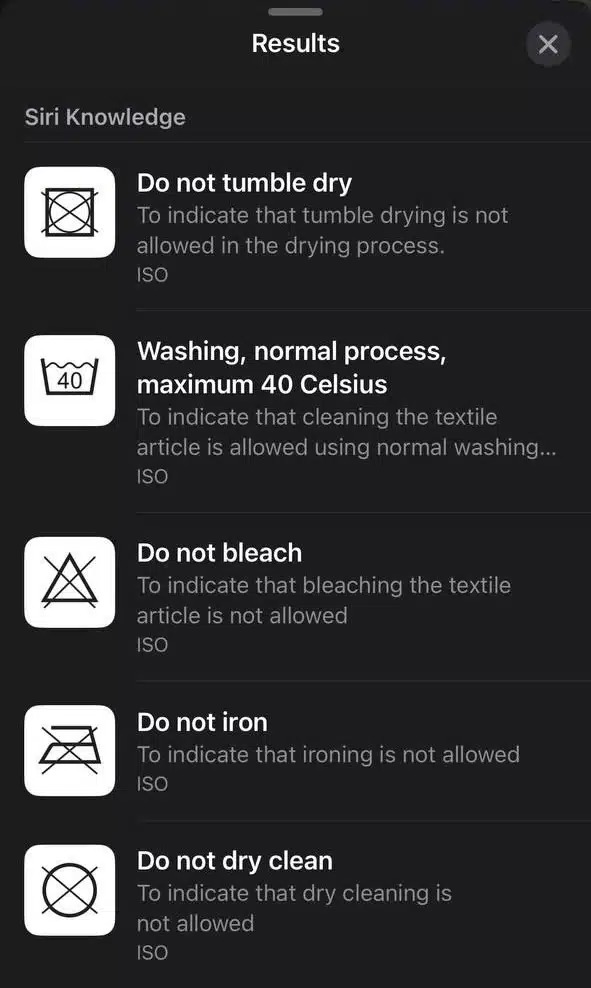This feature transforms your iPhone into a personal laundry assistant, ensuring you never second-guess those washing instructions again.
